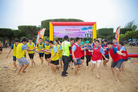 Khi nhắc đến các trò chơi cho du lich team building bãi biển vừa sôi động, vừa dễ tổ chức, lại cực kỳ hài hước, thì đua thuyền trên cạn chắc chắn nằm trong top đầu. Đây là hoạt động thường thấy trong các tour team building 1 ngày hoặc tour nghỉ dưỡng 2N1Đ tại Quy Nhơn, nơi có bãi cát rộng, bằng phẳng và nắng vàng rực rỡ quanh năm.